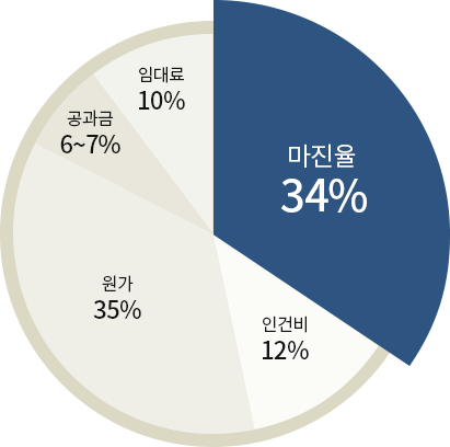 하지만 높은 객단가로 전 지점 최소 25% 이상의 순마진율을 자랑합니다.