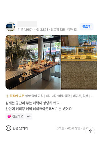 심재는 옆 매장과 확실히 구분되는 특별한 고객 경험을 제공합니다.